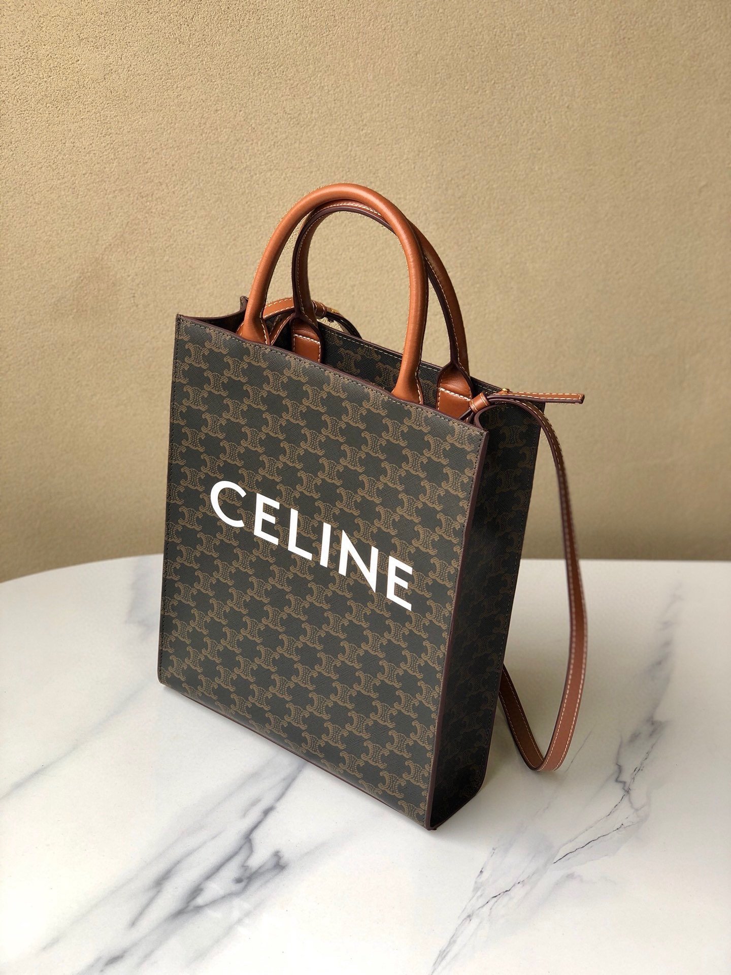 👑Celine tote bag # medium-sized CELINE TRIOMPHE CABAS tote bag. Versatile tote. Classic Triomphe monogram series. Can be carried by hand or on the shoulder. Suitable for everyone. Highly recommended by bloggers and celebrities. Calfskin + PVC. Size: 11 x 13 x 3 inches.