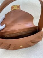 New CELINE spring/summer series new POLLY bag. The new season bag still takes the brand’s iconic Triomphe emblem as the core element. The highlight of the baguette bag silhouette of the Polly handbag on the runway lies in the wavy curve at the bottom, adding a charming attribute. The handbag adopts an envelope flap with a soft wrinkled body, presenting an elegant and retro atmosphere. Magnetic closure. There is one main compartment and one zipper pocket inside. Cow leather with lambskin lining. Gold finish. 🉑️Shoulder carry 🉑️Handheld! Great capacity!