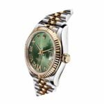 This Rolex Datejust 278243-0016 Yellow Gold & Green Dial Jubilee Replica is a high quality watch. It features a 904L stainless steel case with a yellow gold bezel and sapphire crystal. The movement is an automatic caliber 2236 with a 60-hour power reserve and precision of -3/+3 sec/day within COSC certification limits. The bracelet is a 904L stainless steel Jubilee with adjustable links and a fold clasp in yellow gold and steel. The dial is green with Roman numerals and 904L stainless steel stick hands.