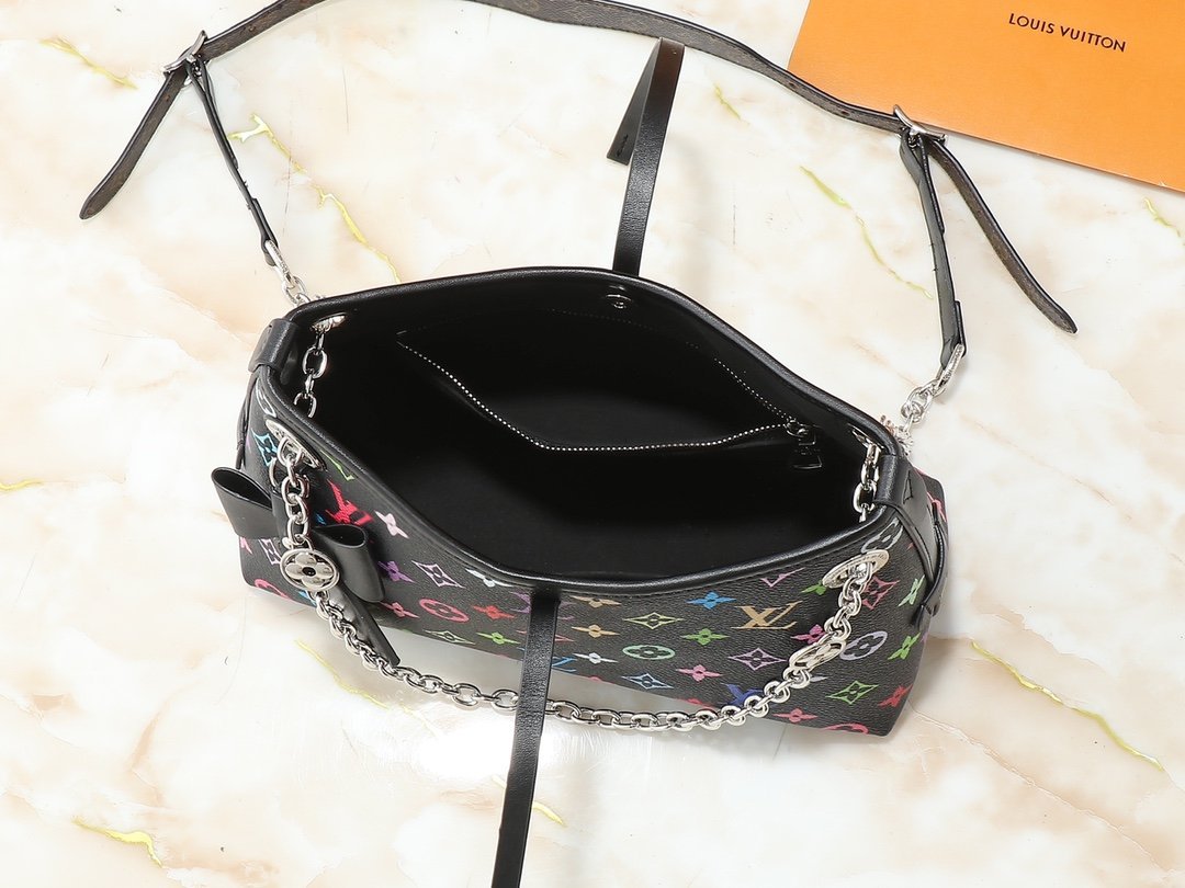 The upgraded M13014 M24860 CarryAll BB bag is crafted from Monogram canvas, featuring Monogram flowers embellished with eye-catching chains, perfect for both day and night occasions. The leather plaque and tie closure complement each other beautifully, while the zippered interior pocket makes it convenient to access credit cards. Dimensions: 26.0 x 17.0 x 10.0 cm