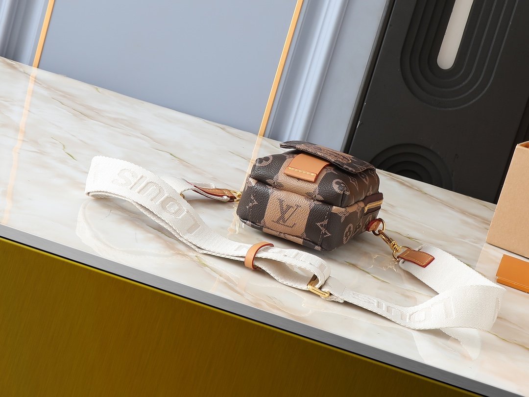 Upgrade the original M81323, M81321, M81005. This FLAP DOUBLE mobile phone bag. Japanese streetwear designer Nigo infuses avant-garde edge into this mobile phone bag. The classic Monogram denim and luxurious Taurillon leather are charmingly combined. The ample capacity can hold cards, keys, several mobile phones and other small items for on-the-go. Removing the shoulder strap can turn it into a wallet. 11 x 18 x 8cm.
