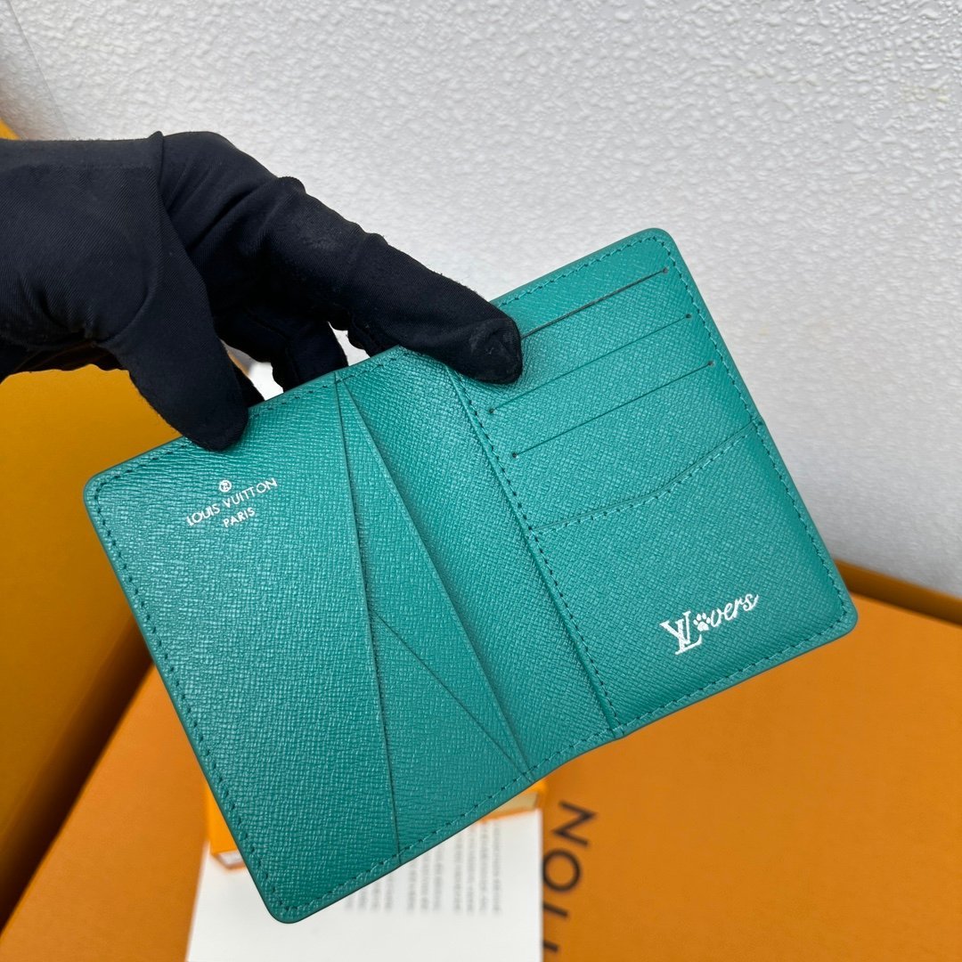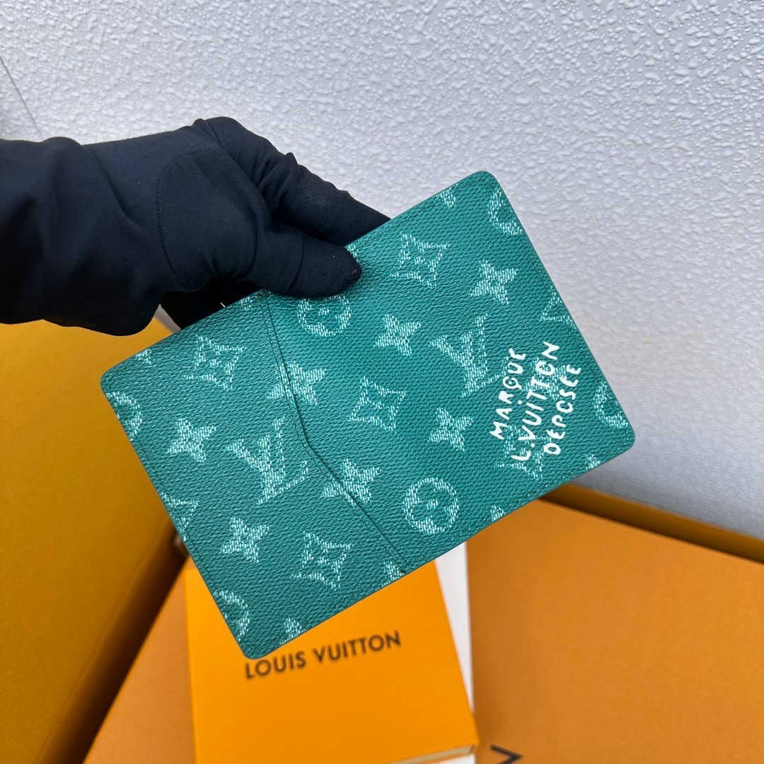 M12659 pocket wallet. This pocket wallet is made of Monogram Heritage coated canvas. It incorporates classic elements such as the vertical and horizontal textures of Damier check and the Marque L.Vuitton Déposée logo, showing Pharrell Williams’ modern interpretation of the Monogram pattern. 11.x 7.5.