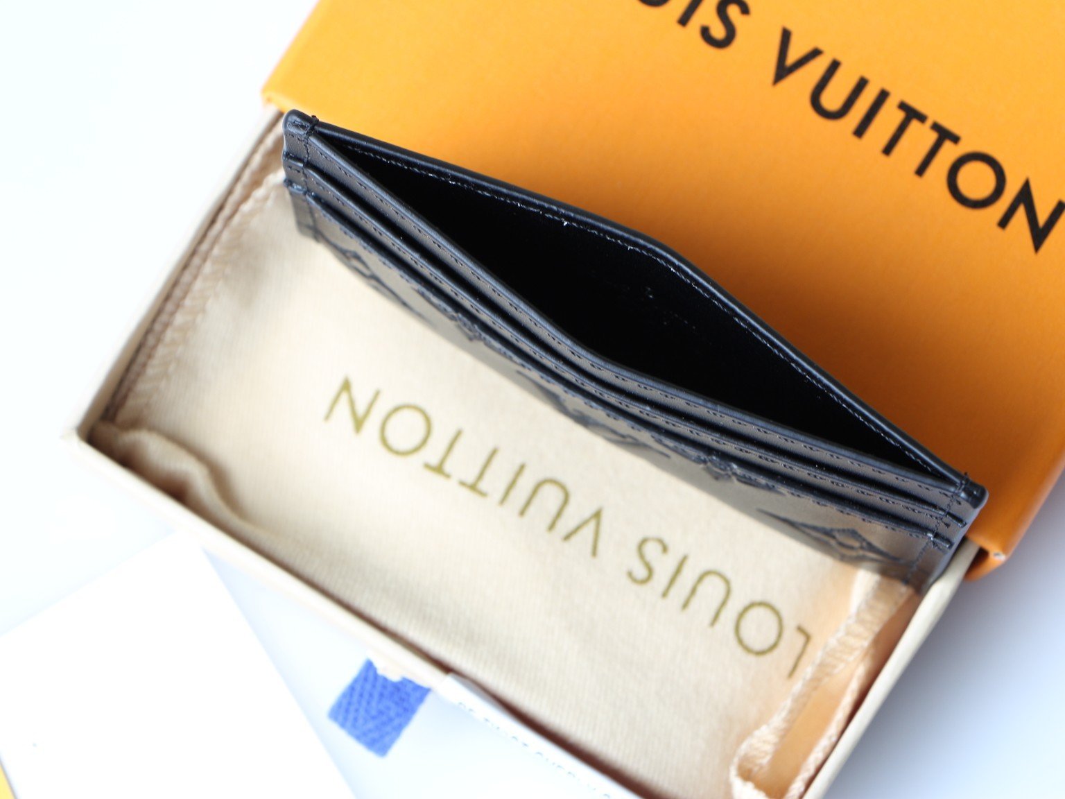 62170 striped embossed grey PORTE CARTES DOUBLE card holder, this card holder in the new Monogram Eclipse coated canvas is beautiful and stylish, and the size is small, which can be easily put in the pocket. Equipped with a central pocket and four slots, it can store credit cards, plane and ferry tickets, and business cards. Size: 11.0x 7.0x 0.6 cm