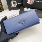 PRADA.👏👏 Classic flap wallet with two compartments.💼 A classic piece, simple and fashionable. Made of top Italian original cross-grained cowhide with excellent texture. Imported threaded lining. White steel metal hardware accessories! Exquisite stitching is evenly and neatly done. Exquisite workmanship. Size: 19x10x2.5. Colors: multicolored scattered labels including plum red, bright red, blue, black, and pink. Number: ML202.