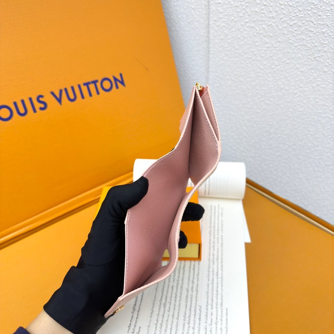 M62933 The compact Portefeuille Lisa is reinterpreted in soft Monogram Empreinte leather and adorned with a Monogram embossing pattern. This stylish purse features a gusset change bag with an LV circle on the zipper head. Inside, there is a banknote compartment, two flat pockets and four card slots.