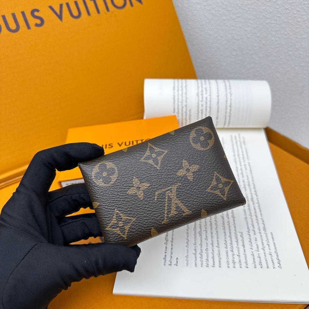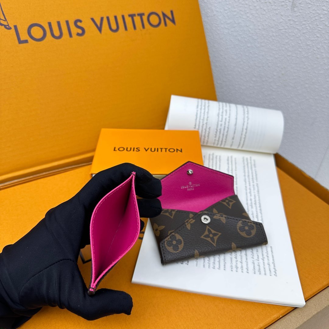 M12884 This card holder renews the envelope-style configuration of the original Kirigami Pochette Ms clutch bag, adding a new idea to the Colormania collection. The Monogram canvas combines a bright leather lining and a glossy snap-on, and the 2-in-1 compartment can be removed for use alone.