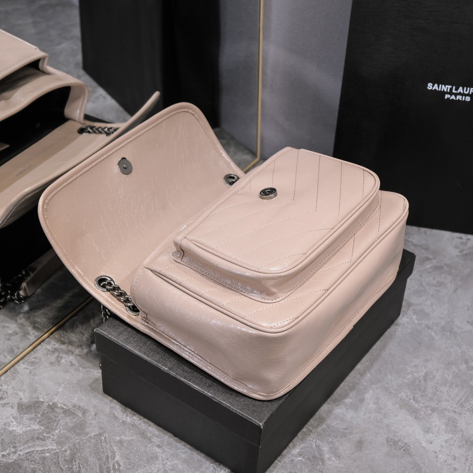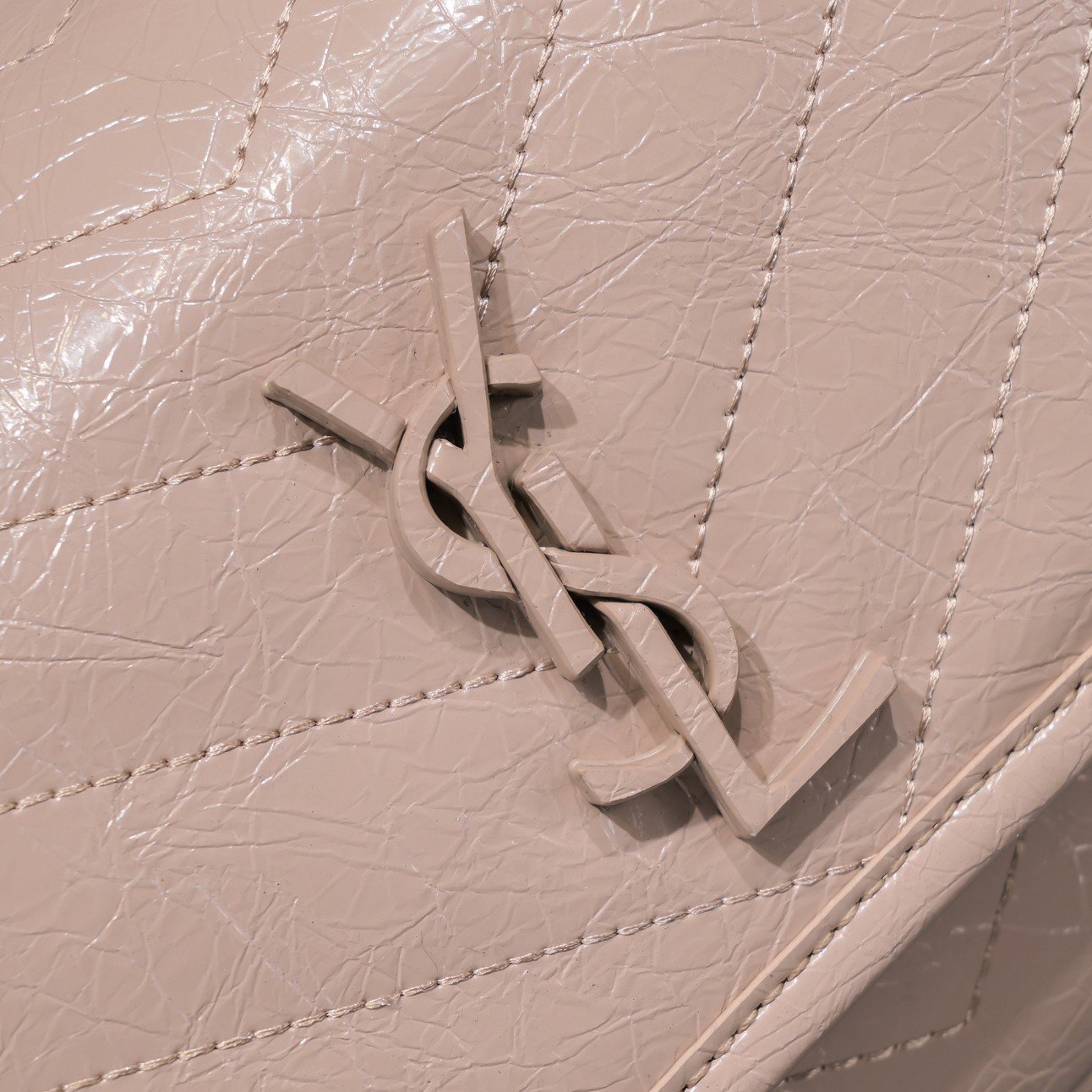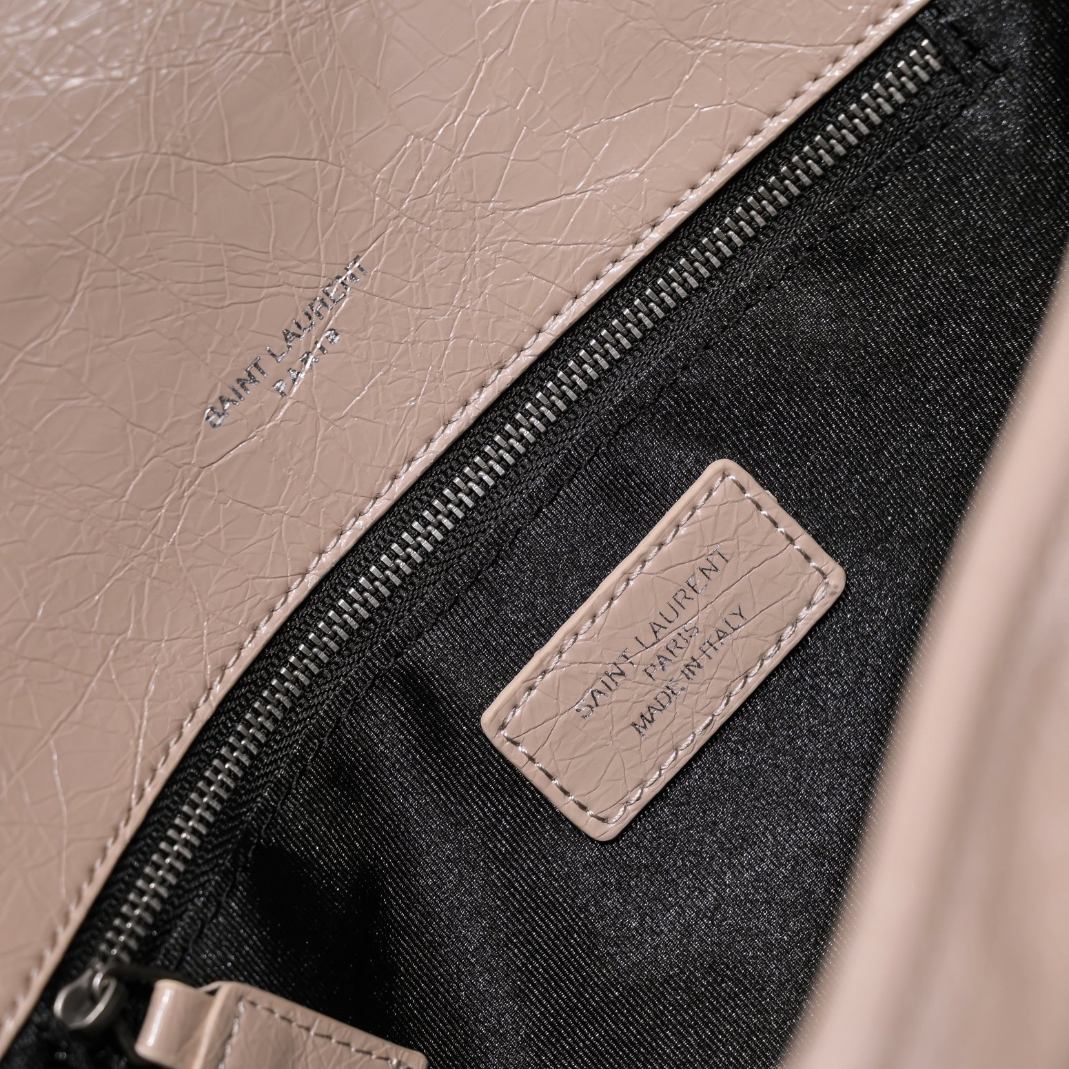 Large Saint Laurent Niki messenger bag – top Italian two-tone baked tar cowhide paired with vintage hardware. The texture and gloss are very unique! The hardware is even more special. The surface of the hardware LOGO is wrapped in cowhide! Two compartments, one zipper pocket, super large capacity! The oiled wax leather of the bag body is extremely soft to the touch and can be bent at will without any problem. Model: 498894. Size: 28x20x8cm.